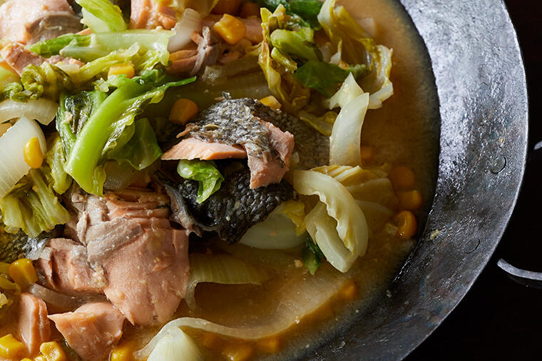 味噌のコクをたっぷり堪能できるちゃんちゃん焼き。甘味やにんにくの香りを纏った合わせ味噌が、蒸し焼きの...