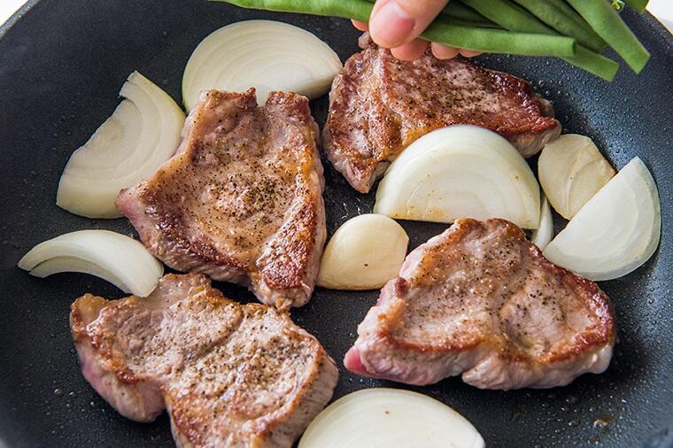 肉にトマト味噌をからめ、野菜にのせて蒸すだけ。豚肉の旨味をとともに食べる野菜は、ぐんぐん箸が進む美味...