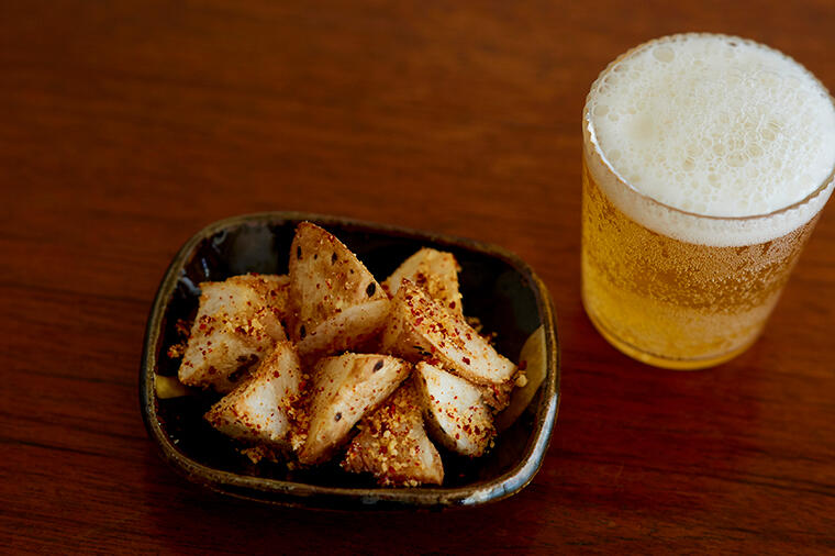 薄味で煮たごぼうに片栗粉をつけて揚げた、斬新な一品。表面を香ばしく揚げれば出来上がり。せっかく目の前...