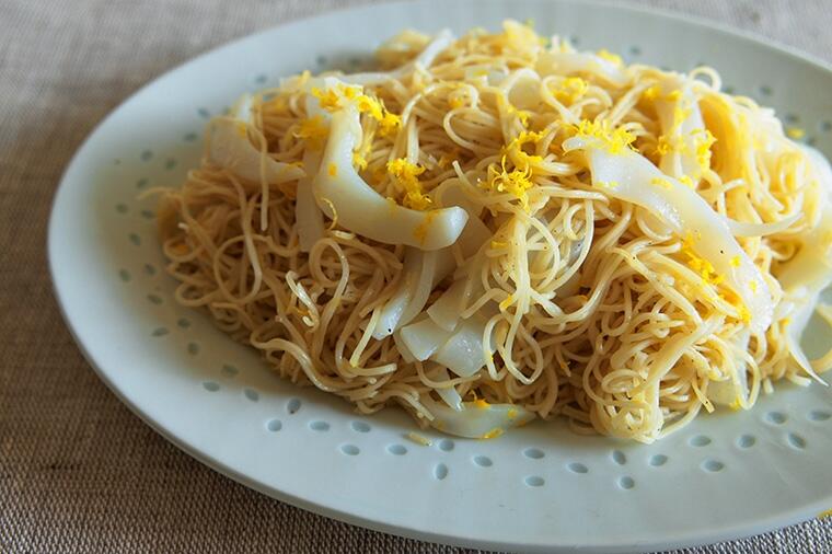 酸味が爽やかに効いた"イカとレモンの焼きそば"