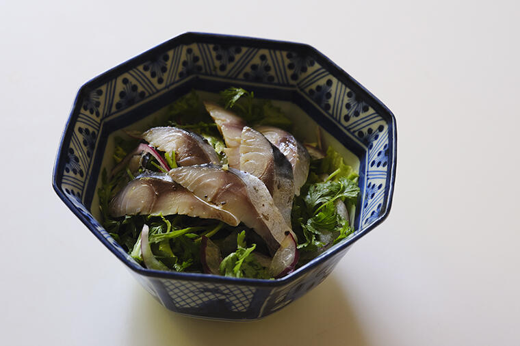 ワインや日本酒のアテになる"しめ鯖のサラダ"