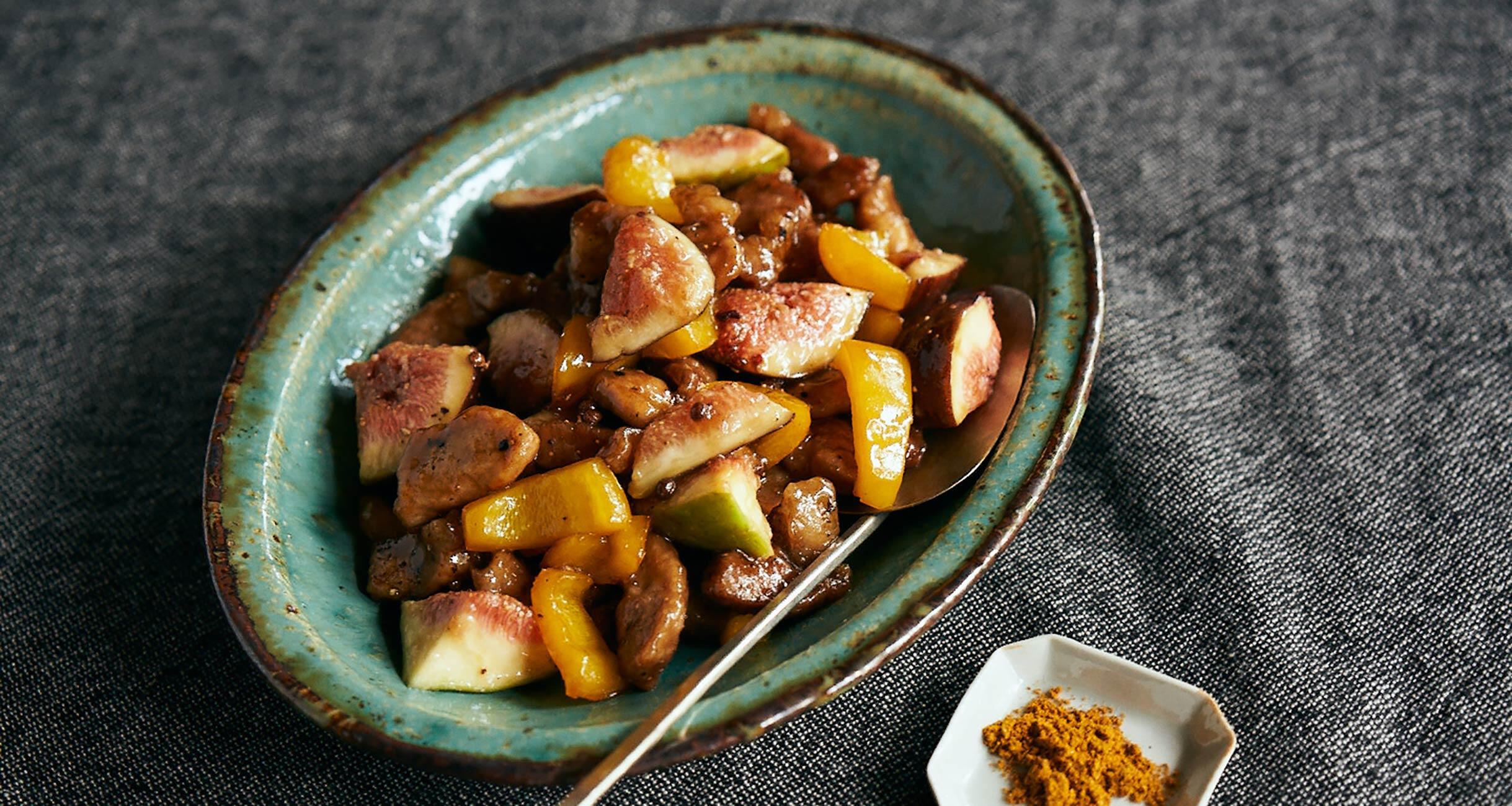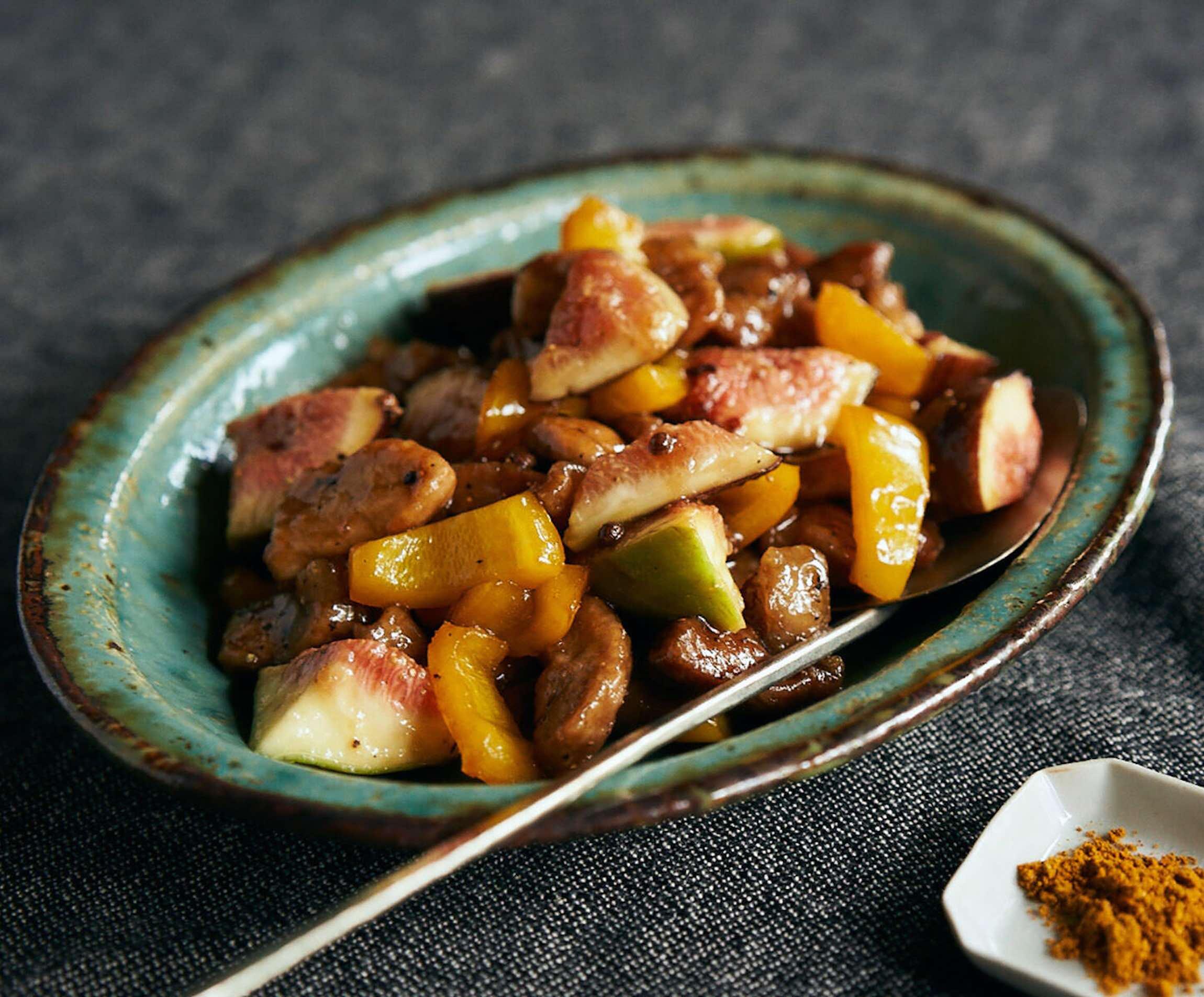 やや小ぶりに切って揚げた豚肉に、パプリカといちじくを合わせました。柔らかい酸味と甘味がおいしいおかず...
