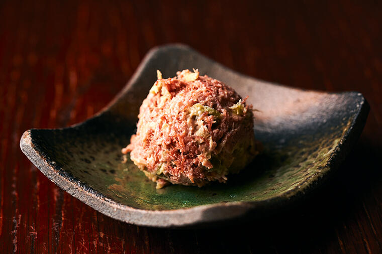 コンビーフの脂がわさびの辛味をまろやかに包み込みます。辛い物好きにお薦めしたい一品です。銀座の人気店...