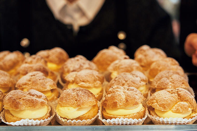 東京・日本橋にある「門洋菓子店」のシュークリームのカスタードには、メープルシロップが入っている。その...